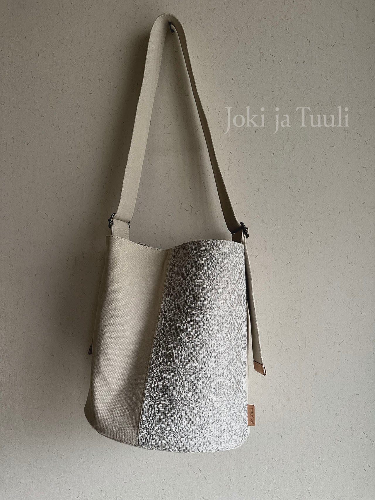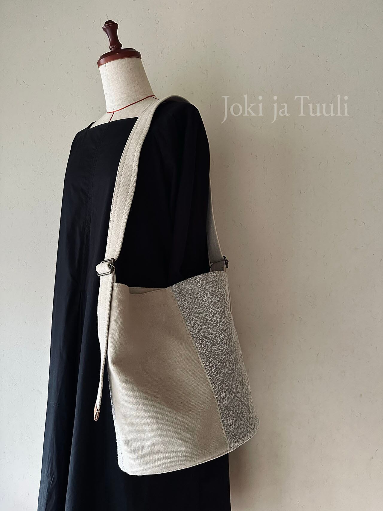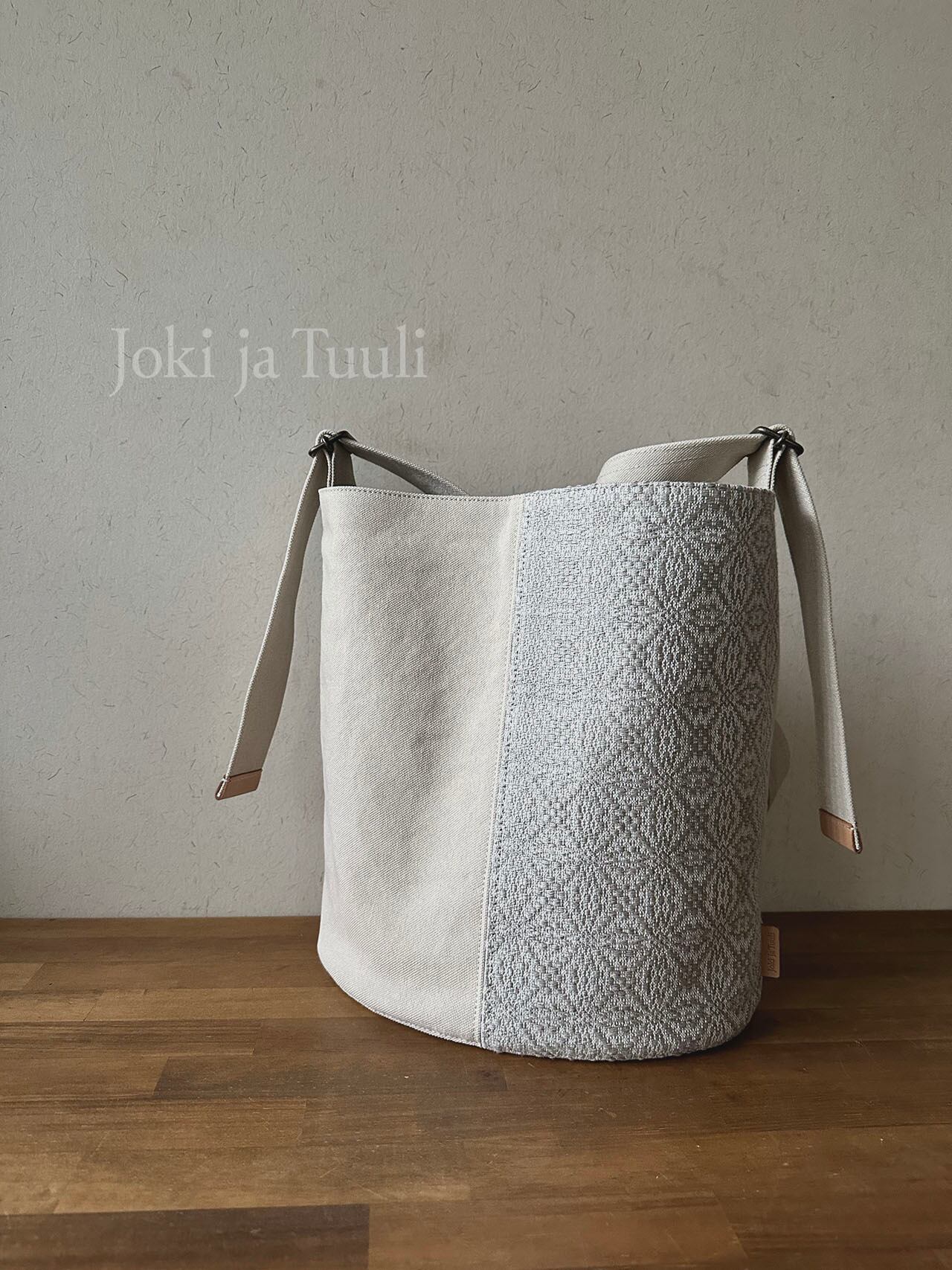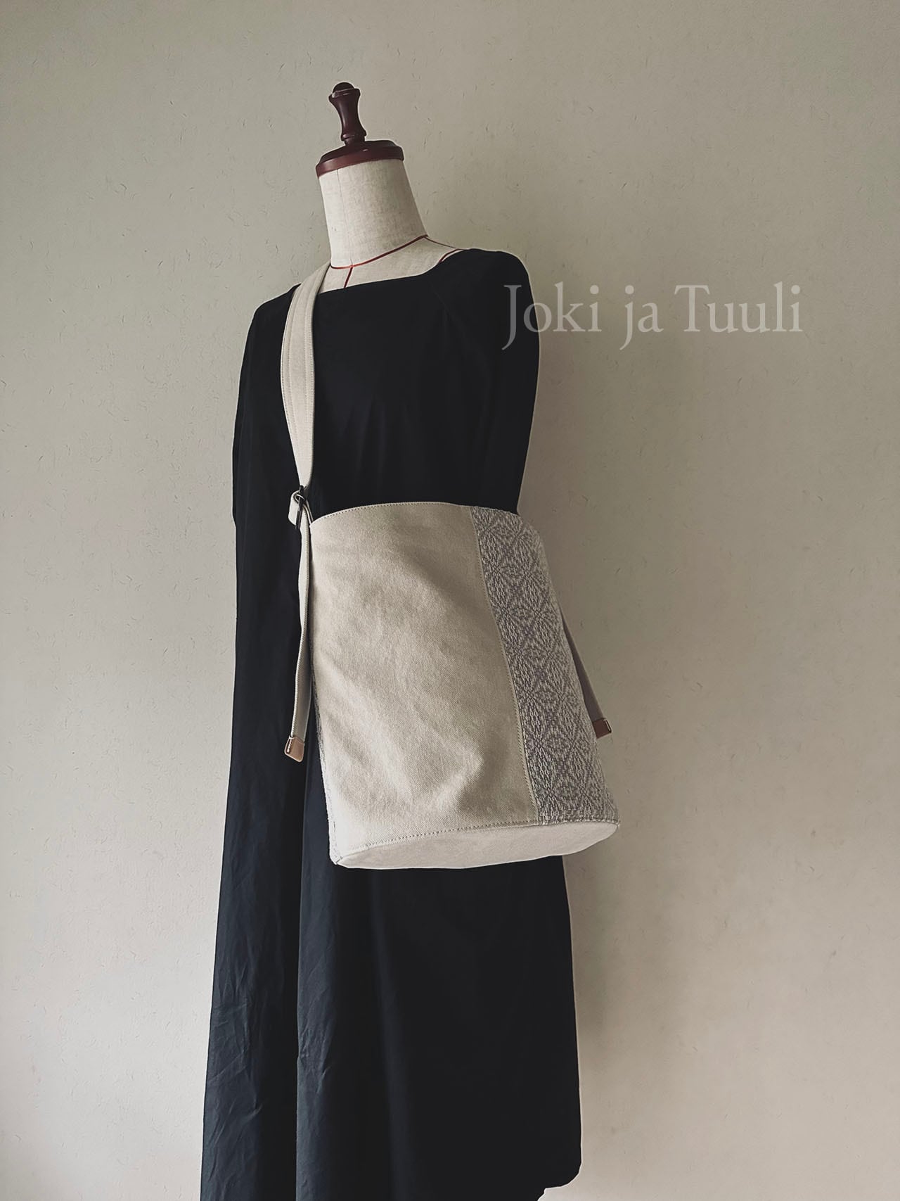 オーバーショットという織技法で織りあげた生地をカジュアルなバッグに仕立てました。