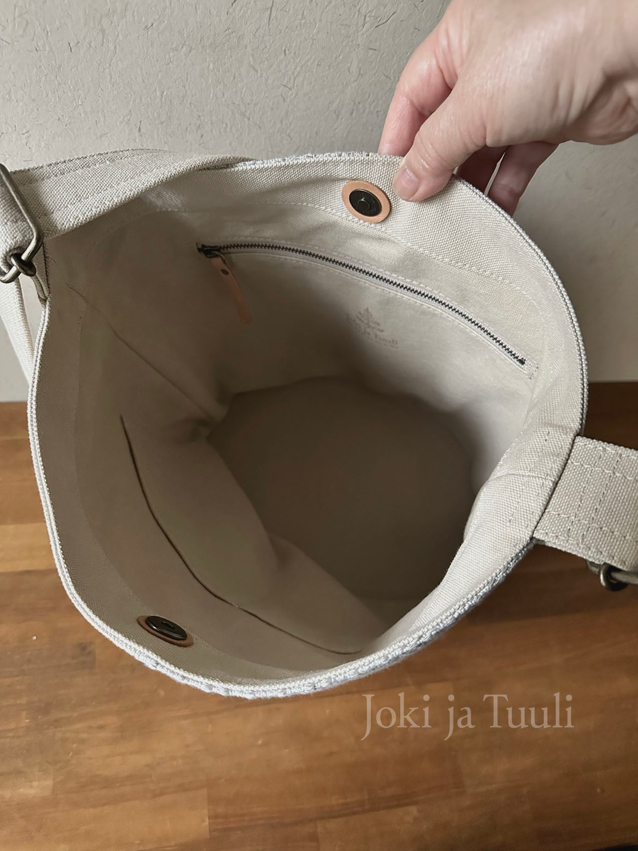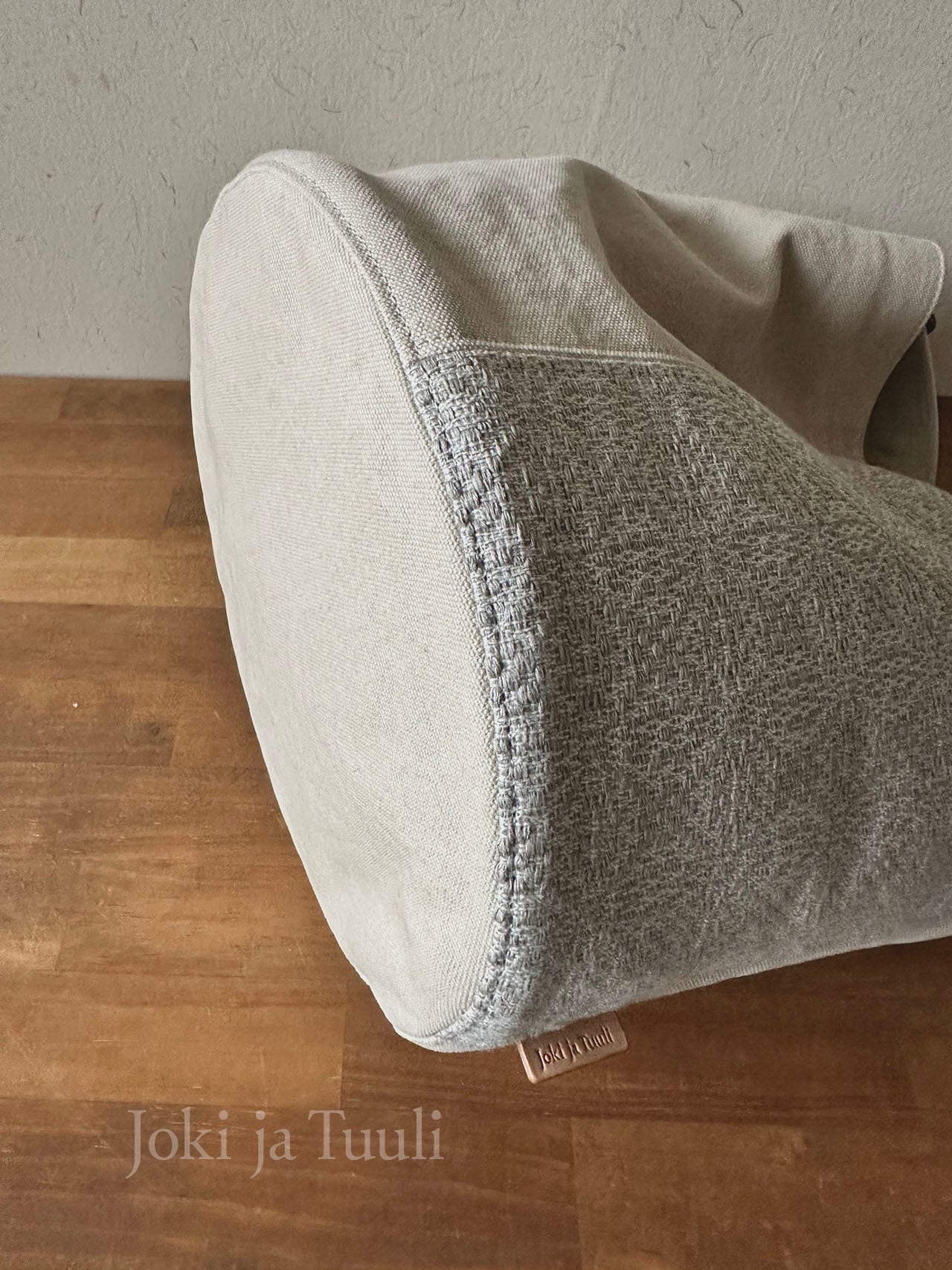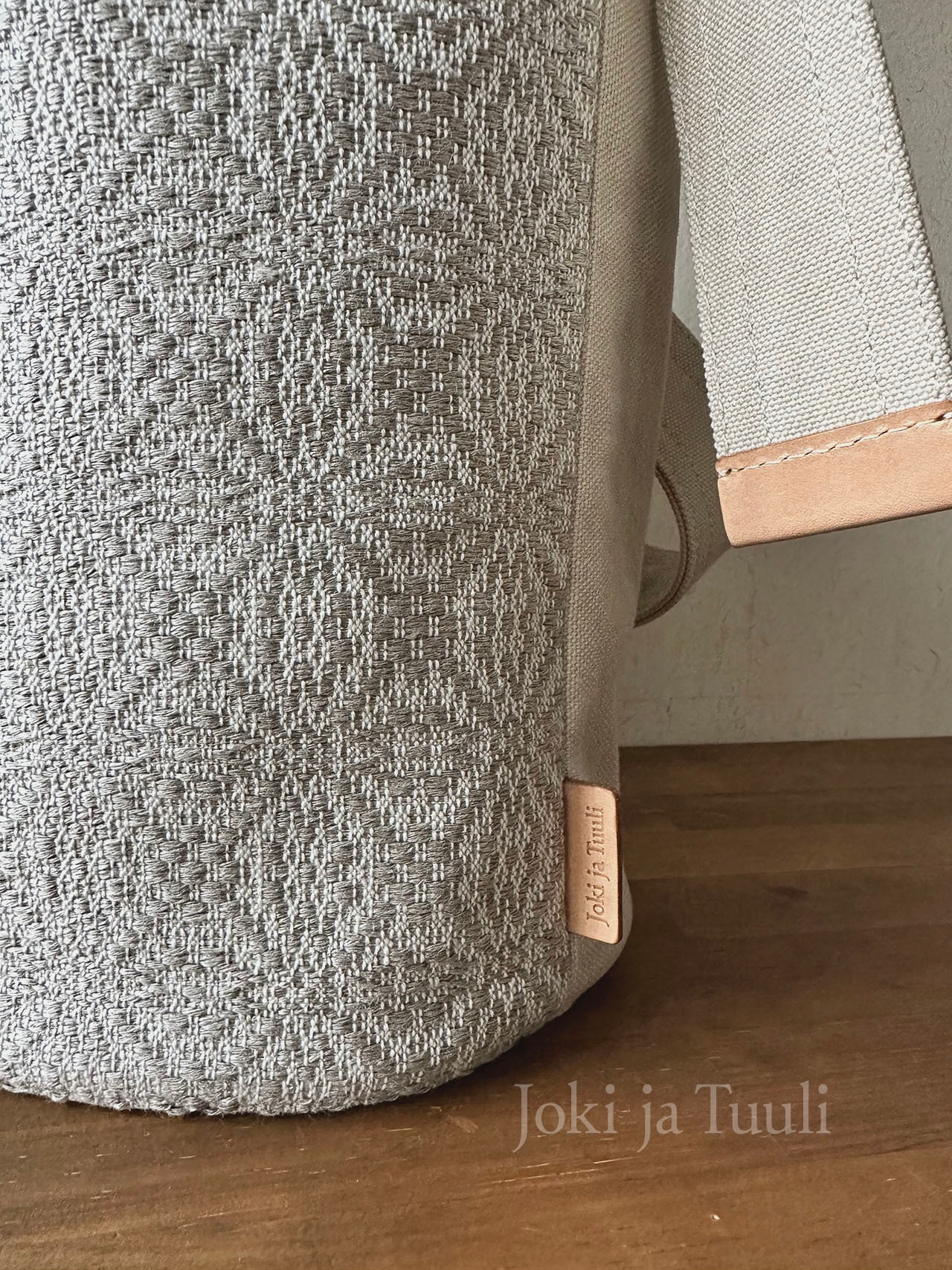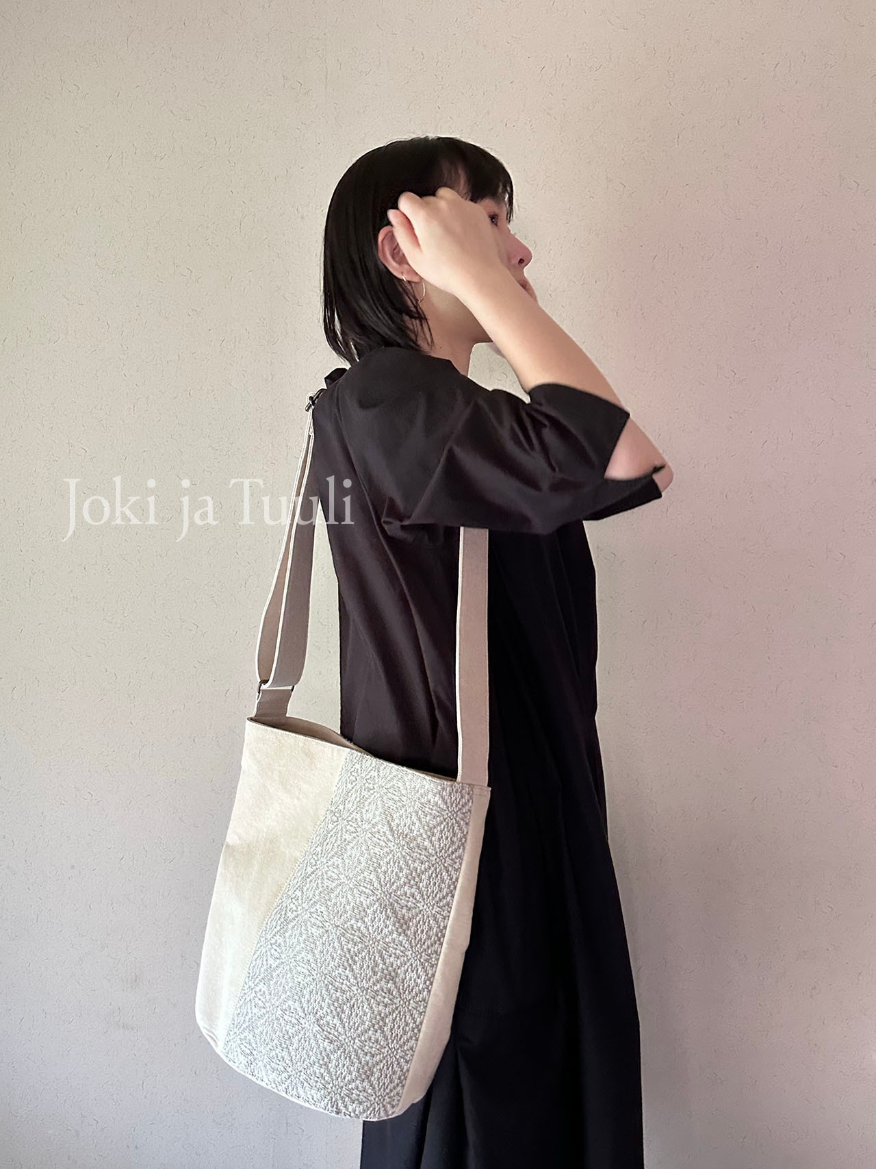 オーバーショットという織技法で織りあげた生地をカジュアルなバッグに仕立てました。