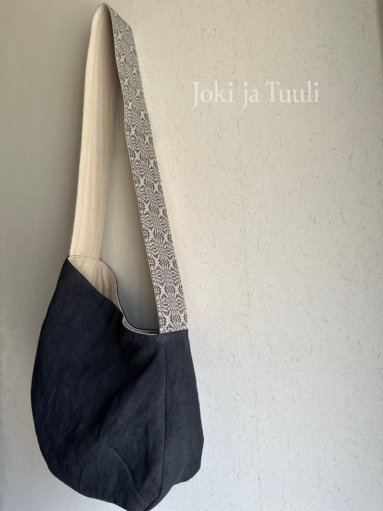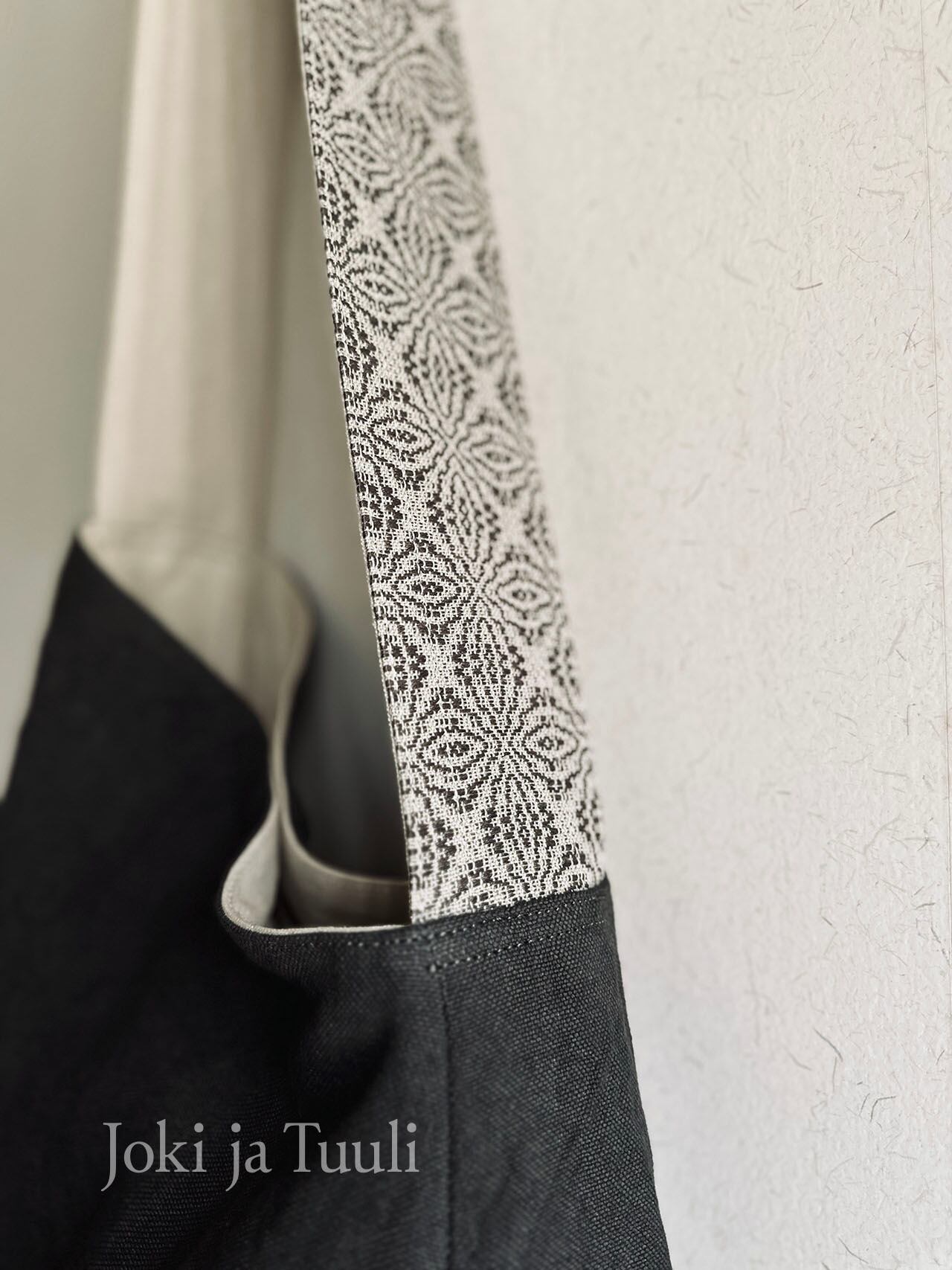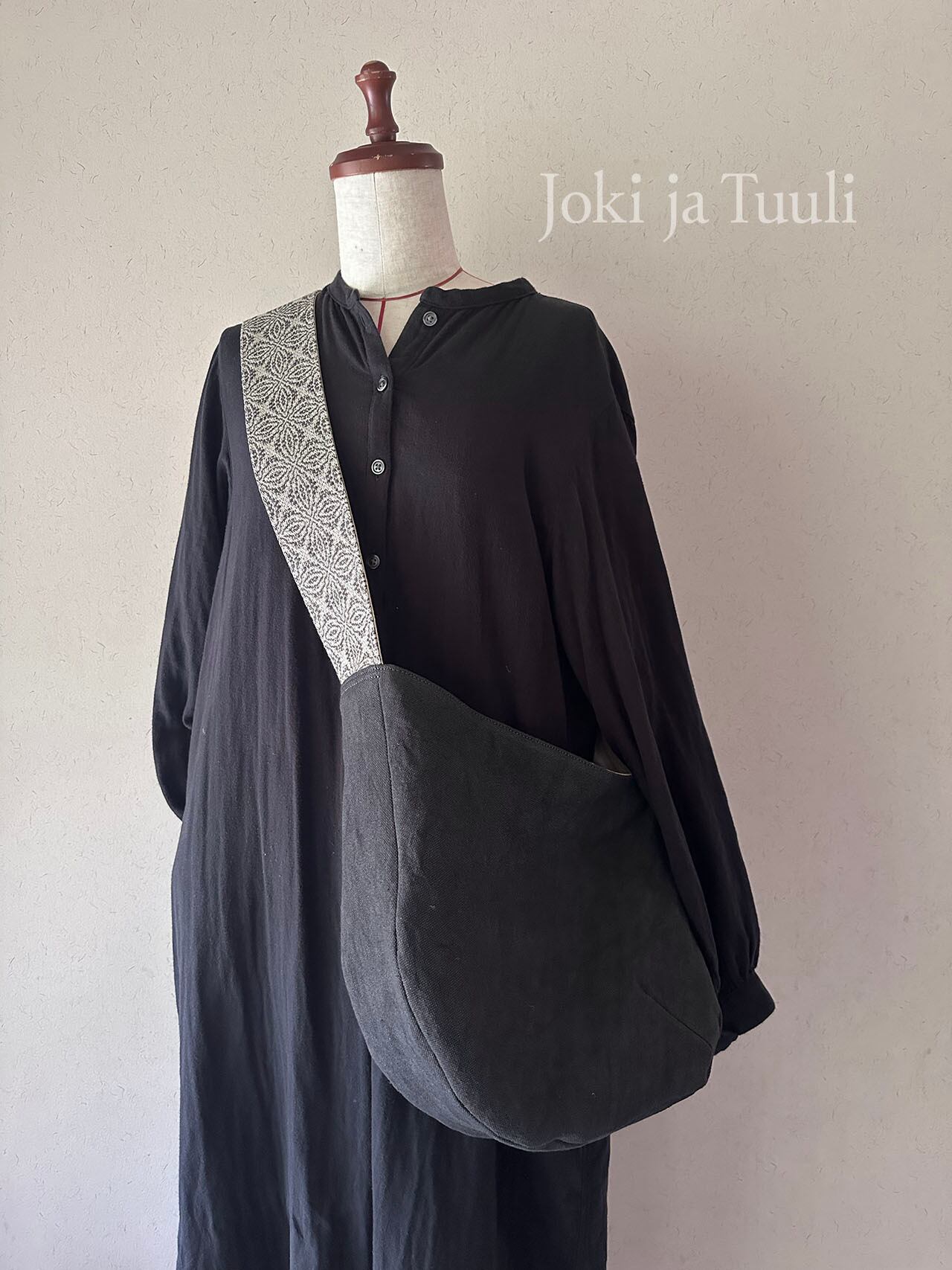 [手織りベルトリネンショルダーバッグ] ブラック