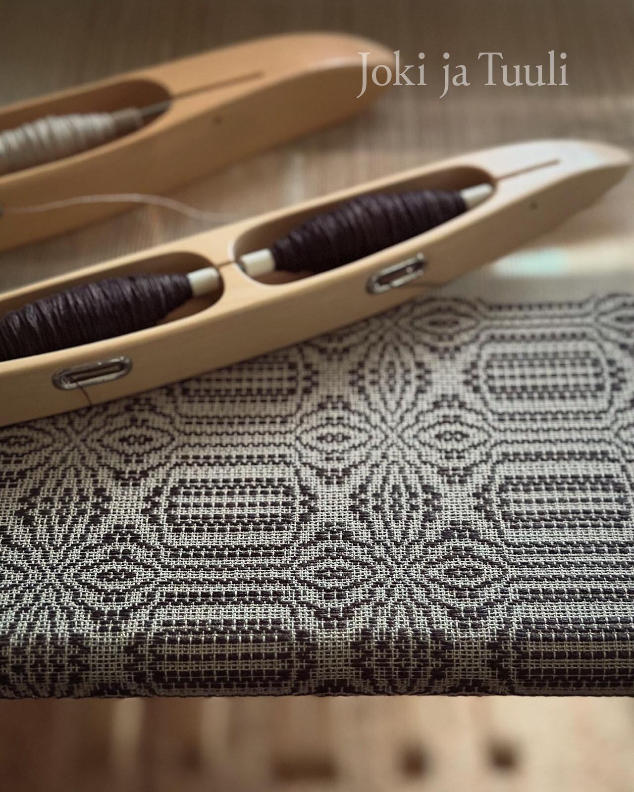 手織り部分は染色した糸を使用しており、伝統的なオーバーショット織で一段一段丁寧に織り上げています。