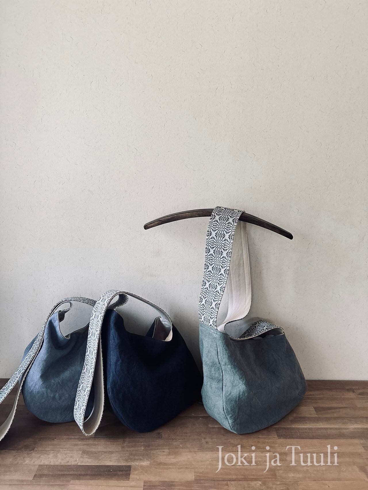 リネンとコットンで織り上げた手織りのベルトと洗いざらしたようなリネン帆布のショルダーバッグです。