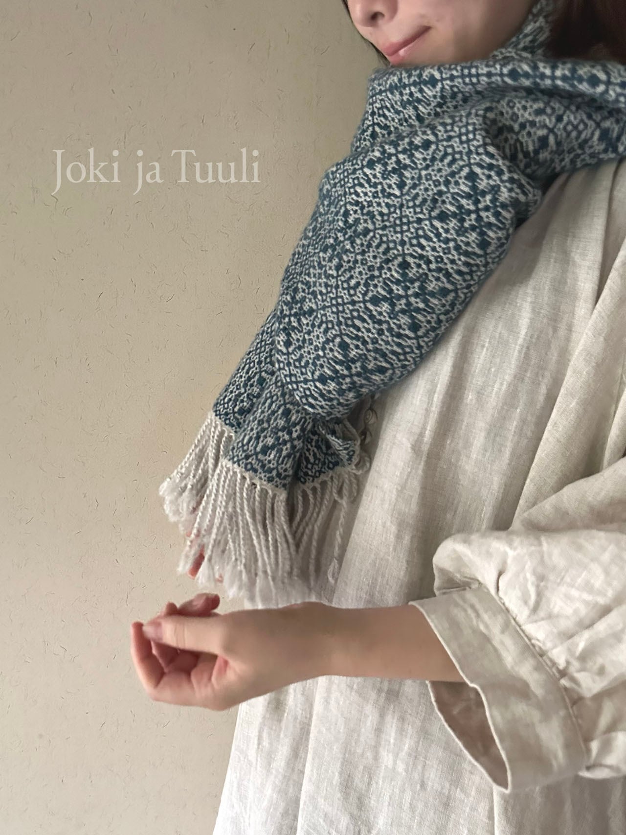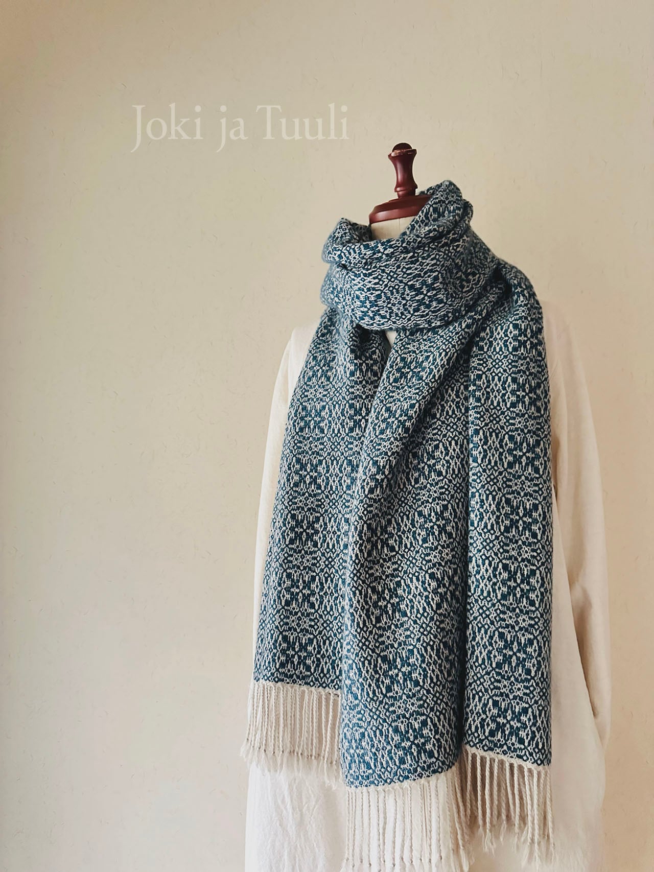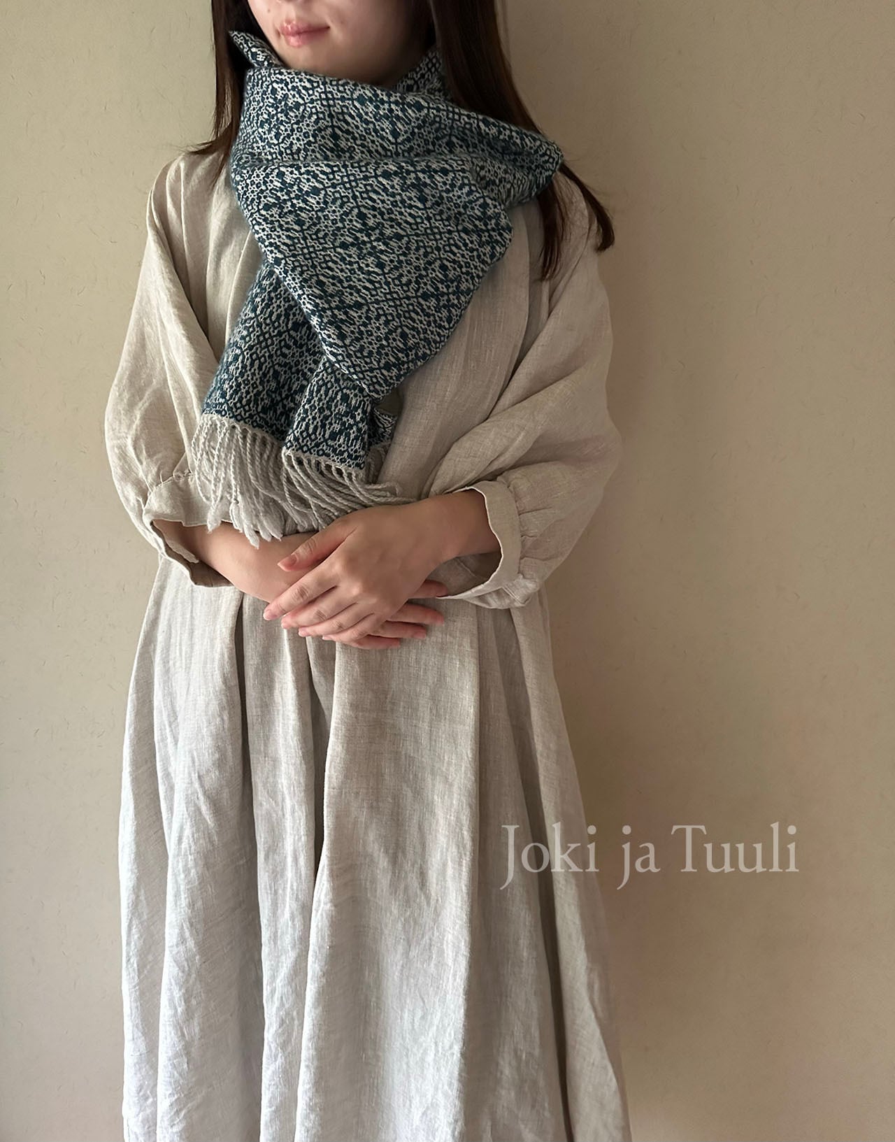 十分な長さがあり襟元に巻くとお写真の様にボリュームがあり、様々な巻き方をお楽しみいただけます。また羽織ればコートを一枚羽織ったかのような暖かさです。