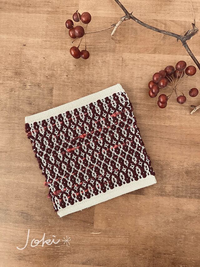 綿糸の経糸にウールの横糸を使用したミニマットです。