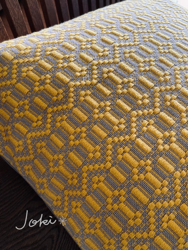 綿糸をオーバーショットという技法で織り上げたクッションカバーです。