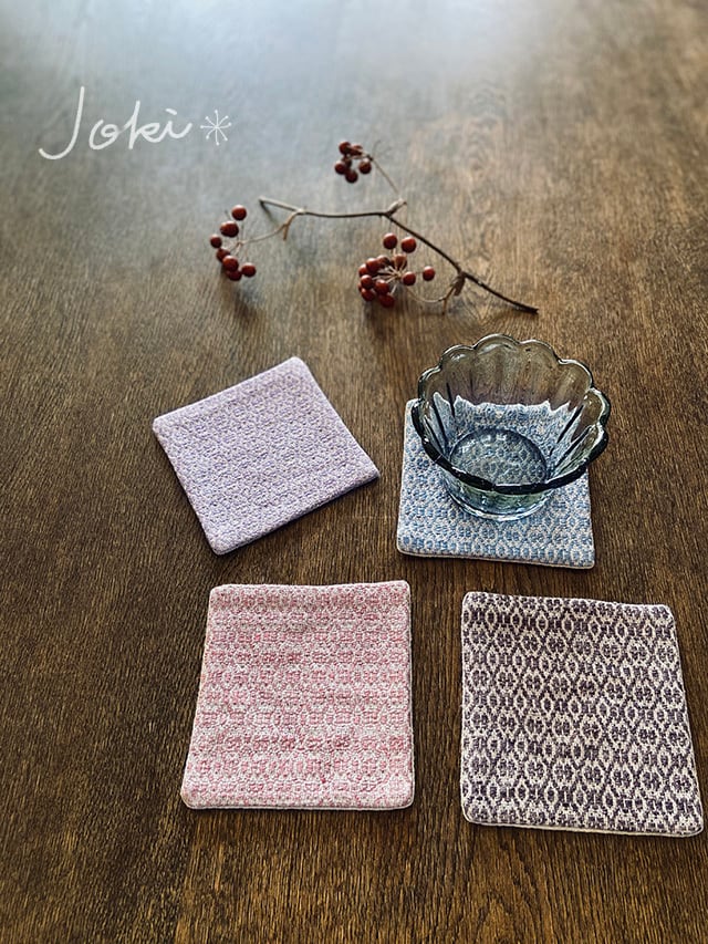 約10cm角と小さなサイズですが、手織りの存在感があり、お茶の時間を一層引き立てます。