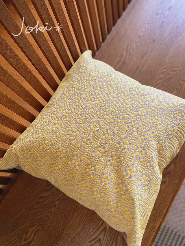 綿糸をオーバーショットという技法で織り上げたクッションカバーです。