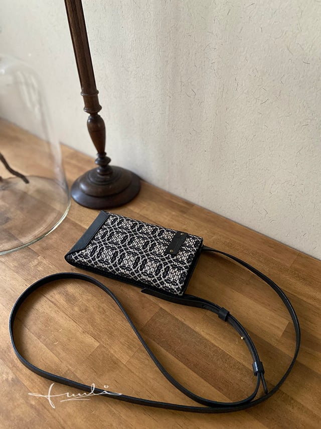 pouch 手織りスマホポシェット(ブラック×ホワイト)