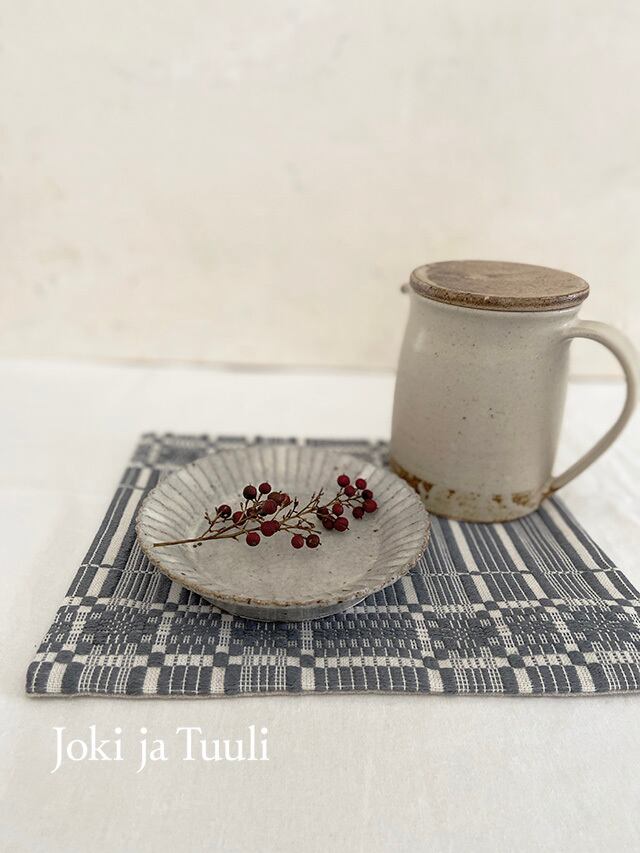 綿糸の経糸に綿糸と緯糸にリネン糸と綿糸を織り込んだカフェマットです。