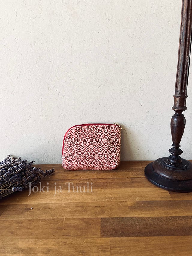 リネンの糸でしっかりと織り上げた手織り布を華やかなポーチに