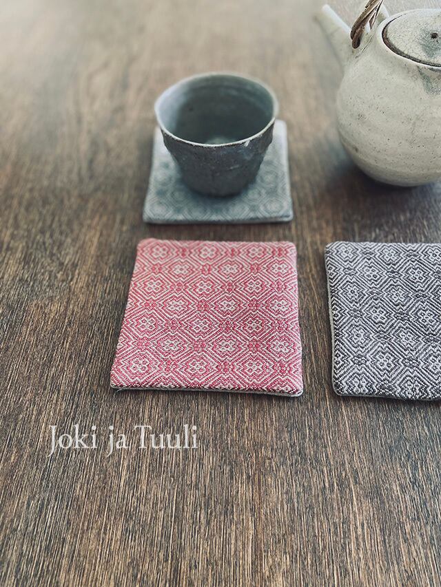 約10cm角と小さなサイズですが、手織りの存在感があり、お茶の時間を一層引き立てます。