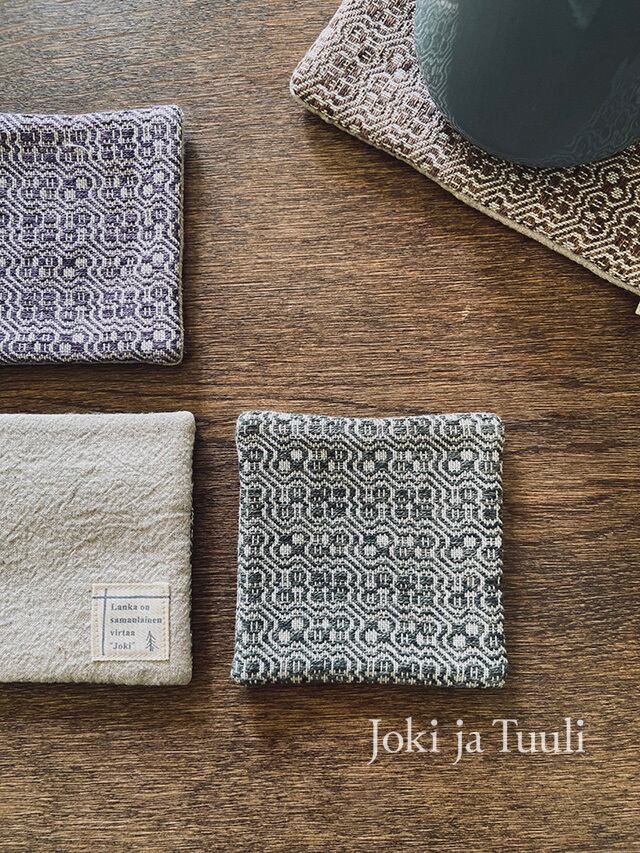 約10cm角と小さなサイズですが、手織りの存在感があり、お茶の時間を一層引き立てます。