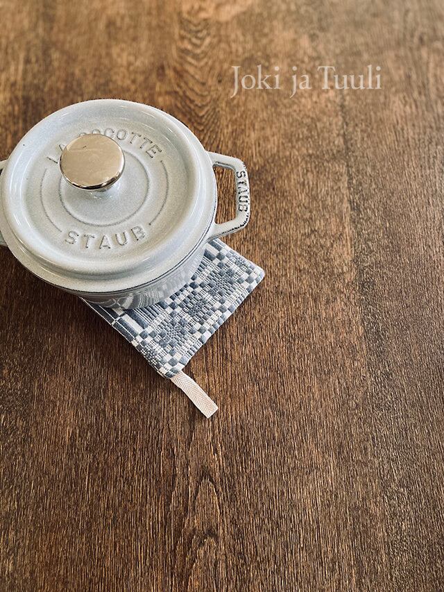 経糸に綿糸、緯糸にリネンを織り込んだ長方形のポットマットです。