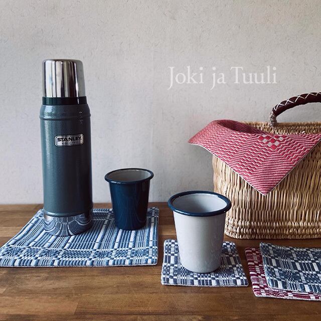 約10cm角と小さなサイズですが、手織りの存在感があり、お茶の時間を一層引き立てます。