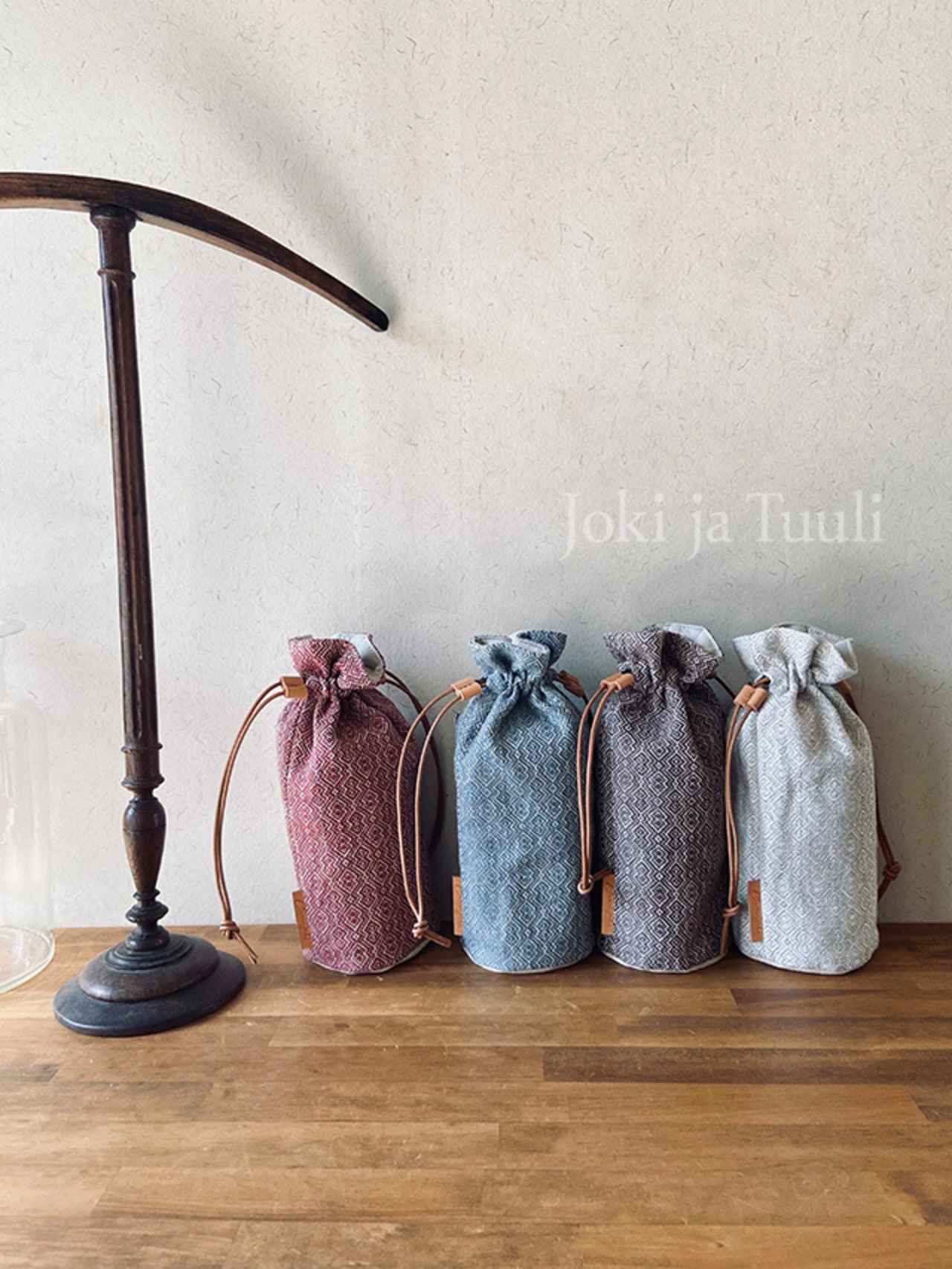 手織り製品ですので、過度のお洗濯はお避けください。汚れてしまった場合は、革紐を外して、中性洗剤で優しく手洗いし、陰干し後アイロンで形を整えてください。