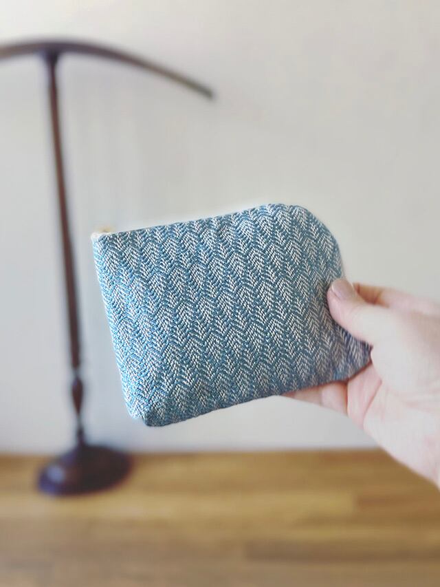 リネンの糸でしっかりと織り上げた手織り布を華やかなポーチに
