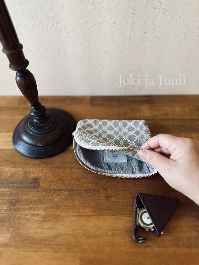 pouch[手織りLファスナーポーチ]グレー×ホワイト