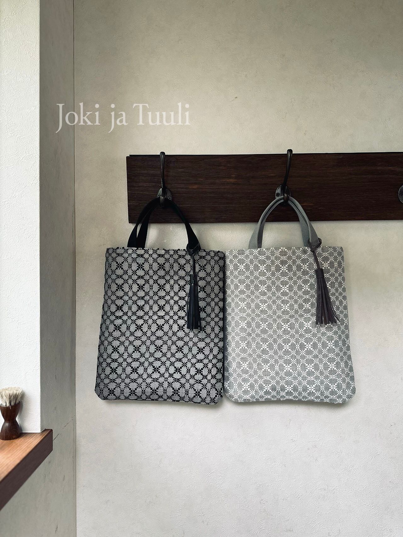 オーバーショットという技法を使って織り上げた手織り布をミニバッグに仕立てました。