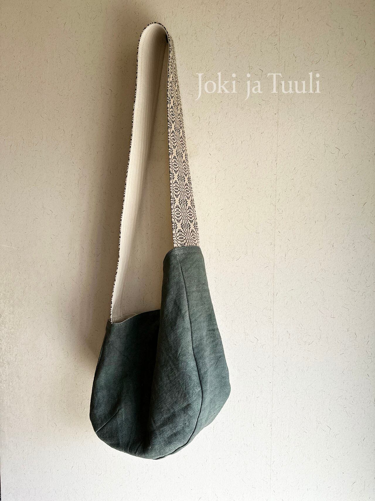 リネンとコットンで織り上げた手織りのベルトと洗いざらしたようなリネン帆布のショルダーバッグです。