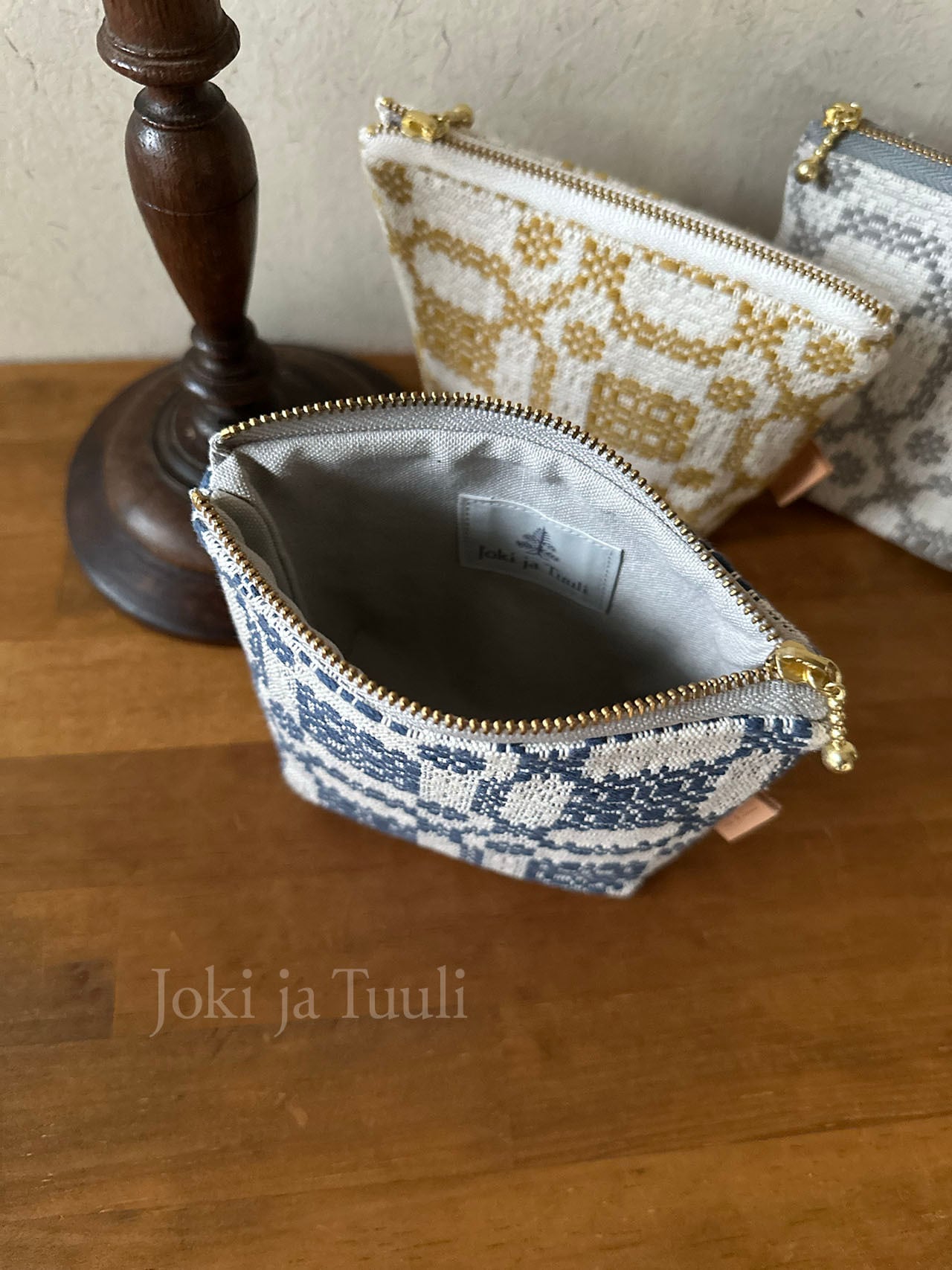 どことなく北欧を思わせるコロッとした可愛いポーチに仕立てました。